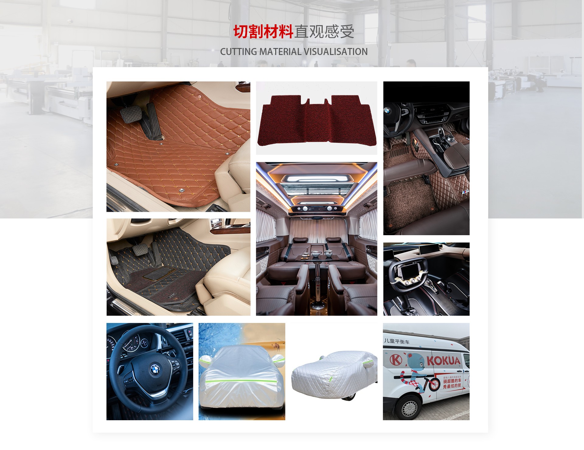 針對(duì)汽車用品行業(yè)的專車版型的特點(diǎn)卓星切割機(jī)為優(yōu)勢(shì)選擇方案。無需大量庫(kù)存,根據(jù)客戶要求,現(xiàn)場(chǎng)定制,出貨速度快。制作精美無誤差,主要切割全包圍腳墊、大包圍腳墊、絲圈腳墊、汽車坐墊、汽車座套、后備箱墊、避光墊、方向盤套等柔性材料制品。