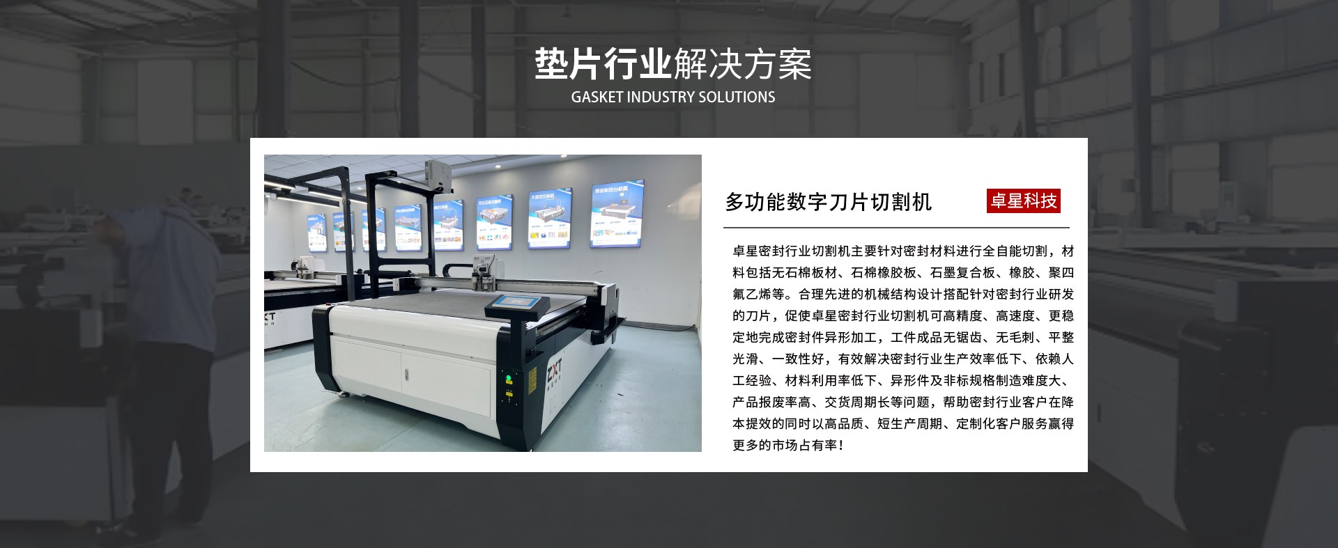 卓星密封行業(yè)切割機(jī)主要針對(duì)密封材料進(jìn)行全自能切割,材料包括無石棉板材、石棉橡膠板、石墨復(fù)合板、橡膠、聚四氟乙烯等。合理先進(jìn)的機(jī)械結(jié)構(gòu)設(shè)計(jì)搭配針對(duì)密封行業(yè)研發(fā)的刀片,促使卓星密封行業(yè)切割機(jī)可高精度、高速度、更穩(wěn)定地完成密封件異形加工,工件成品無鋸齒、無毛刺、平整光滑、一致性好,有效解決密封行業(yè)生產(chǎn)效率低下、依賴人工經(jīng)驗(yàn)、材料利用率低下、異形件及非標(biāo)規(guī)格制造難度大、產(chǎn)品報(bào)廢率高、交貨周期長等問題,幫助密封行業(yè)客戶在降本提效的同時(shí)以高品質(zhì)、短生產(chǎn)周期、定制化客戶服務(wù)贏得更多的市場占有率!