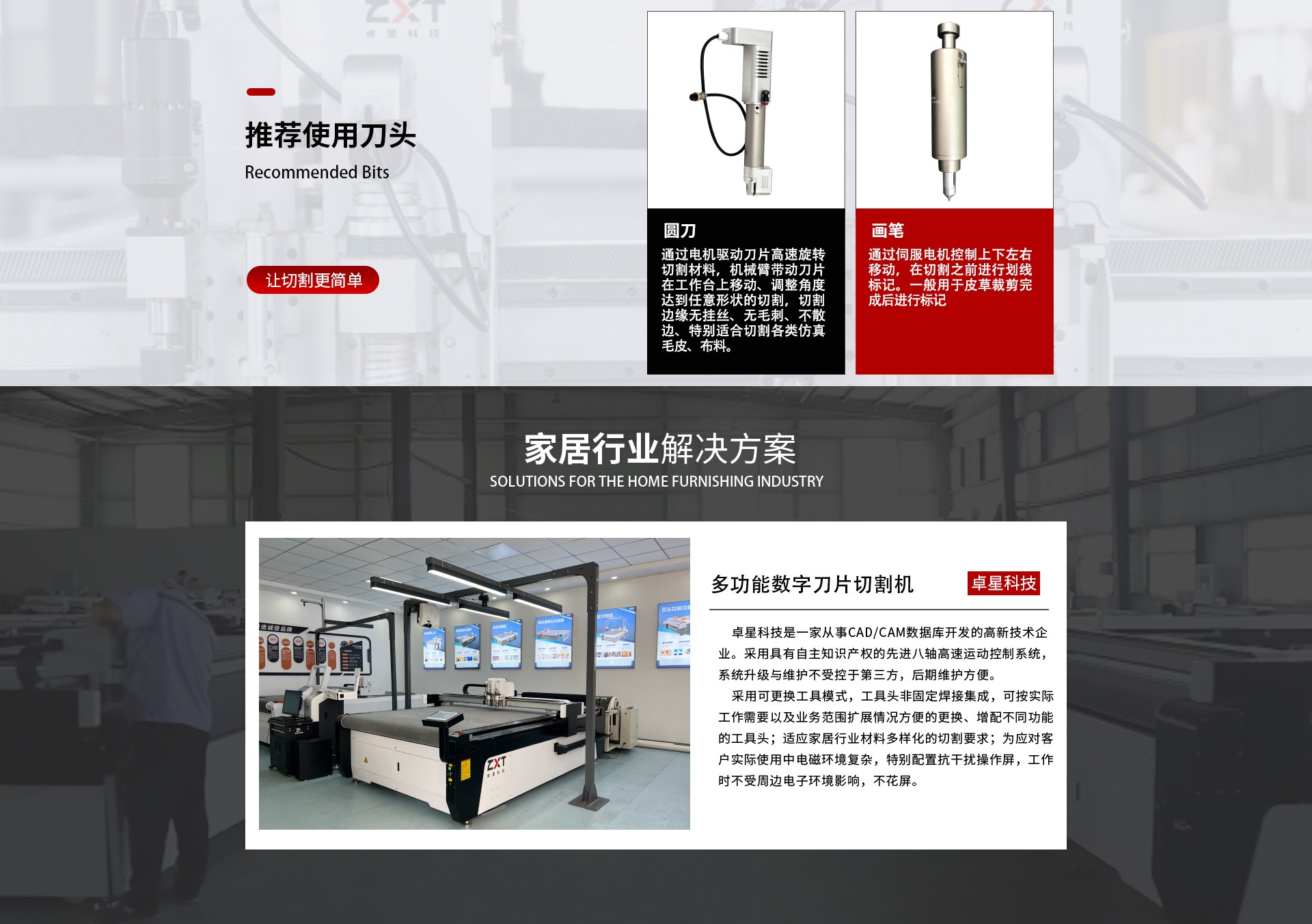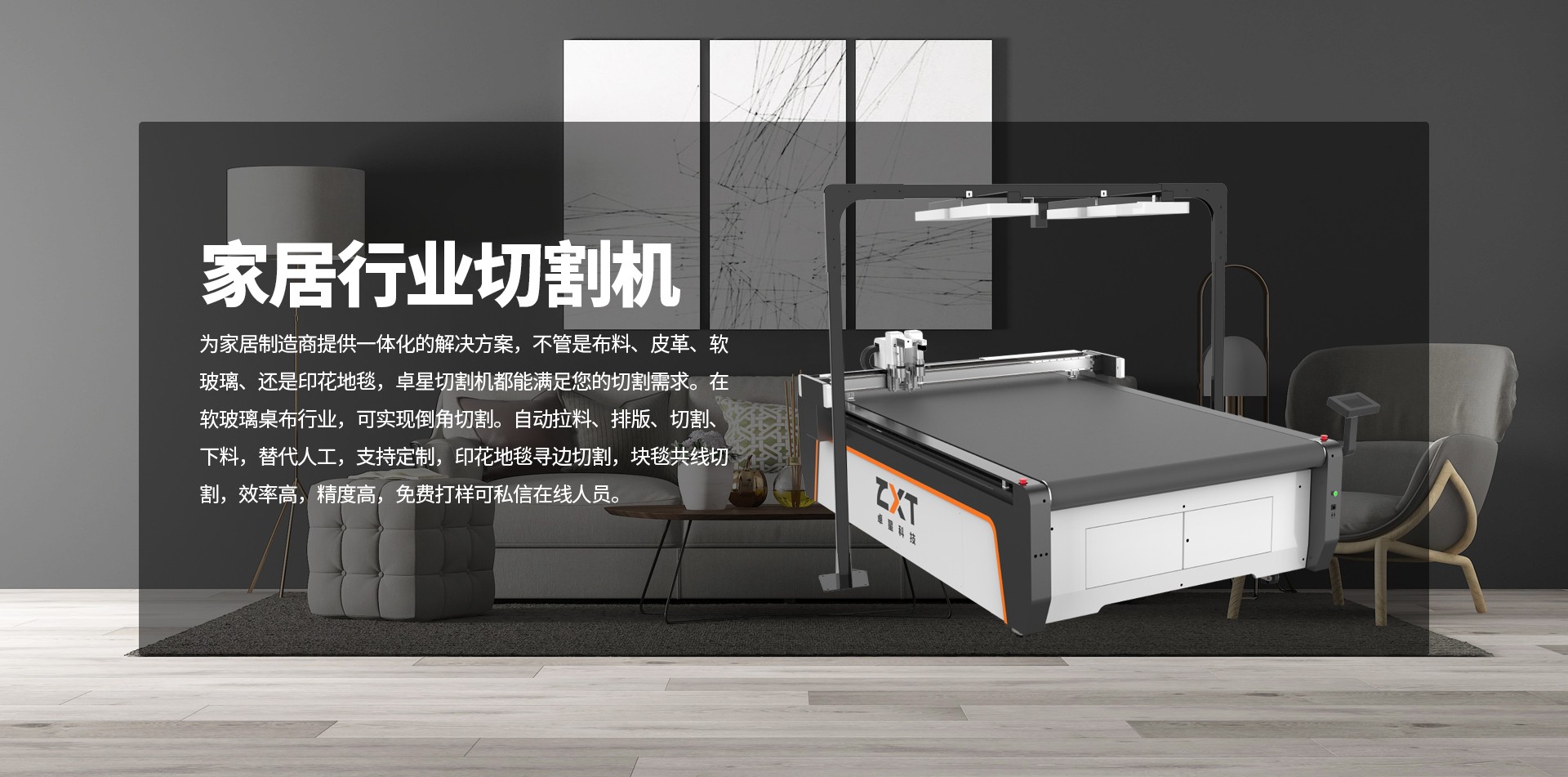 采用可更換工具模式,工具頭非固定焊接集成,可按實際工作需要以及業務范圍擴展情況方便的更換、增配不同功能的工具頭;適應家居行業材料多樣化的切割要求;為應對客戶實際使用中電磁環境復雜,特別配置抗干擾操作屏,工作時不受周邊電子環境影響,不花屏;